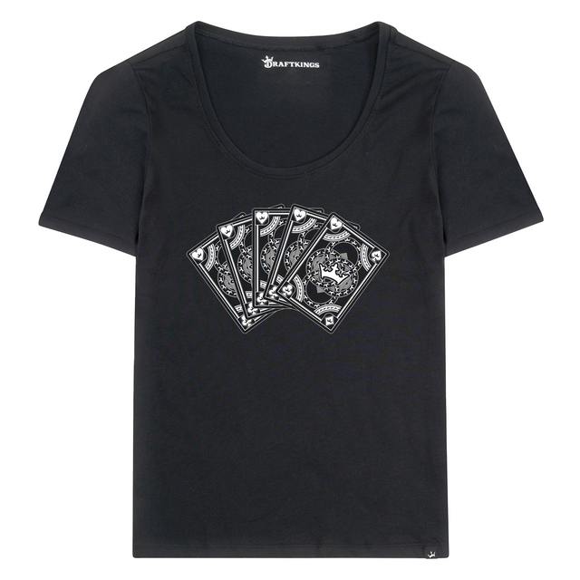 2024 Limited Edition! This women's t-shirt features a unique design inspired by DraftKings' crown cards, perfect for any casino lover. Made with a comfortable u-neck design, this shirt is a stylish and comfortable addition to any wardrobe.