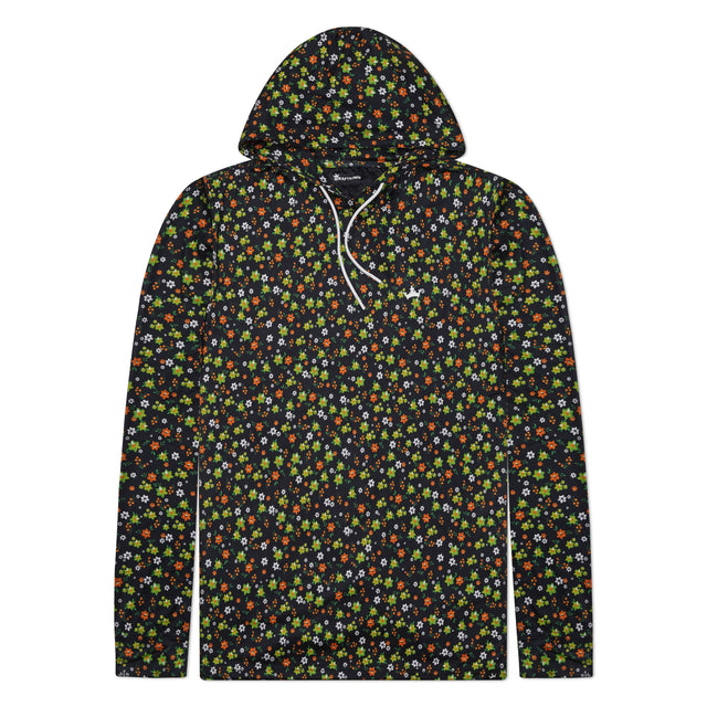 Introducing the DraftKings Floral Golf Hoodie. Designed for comfort and built for action, this hoodie features four-way stretch technology for ease of movement. Stay fresh with moisture-wicking and breathable fabric, while enjoying the softness of the modern comfort fit. Adorned with our crown logo on the left shoulder, this hoodie is perfect for a stylish and active lifestyle.