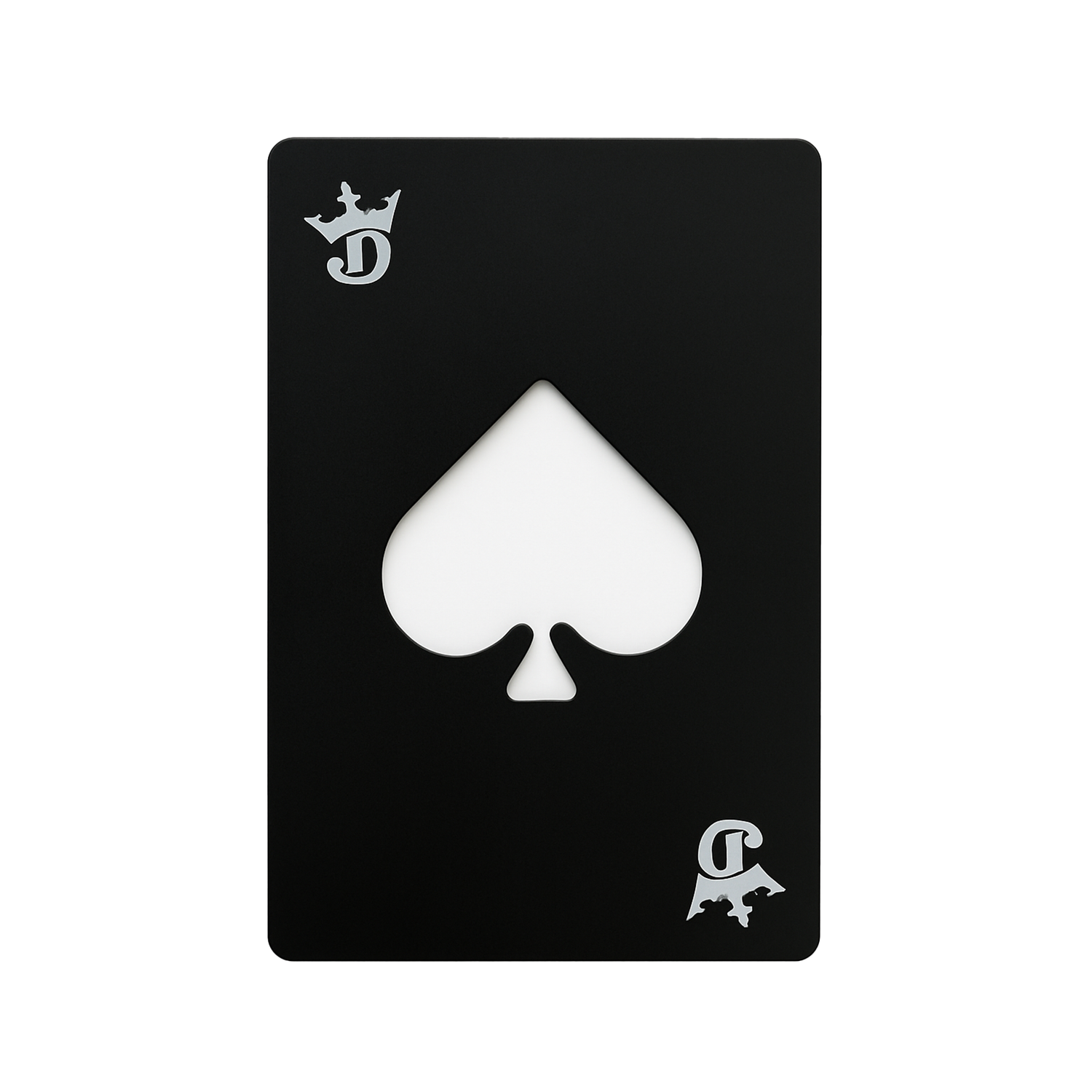 Open your next drink with style and flair using the DraftKings Poker Card Bottle Opener — a sleek, stainless steel tool designed to impress. Its matte black finish and signature spade cutout bring a bold, modern edge to a classic bar essential. Whether you're at home, on the golf course, or at a tailgate, this pocket-sized opener is as functional as it is iconic.