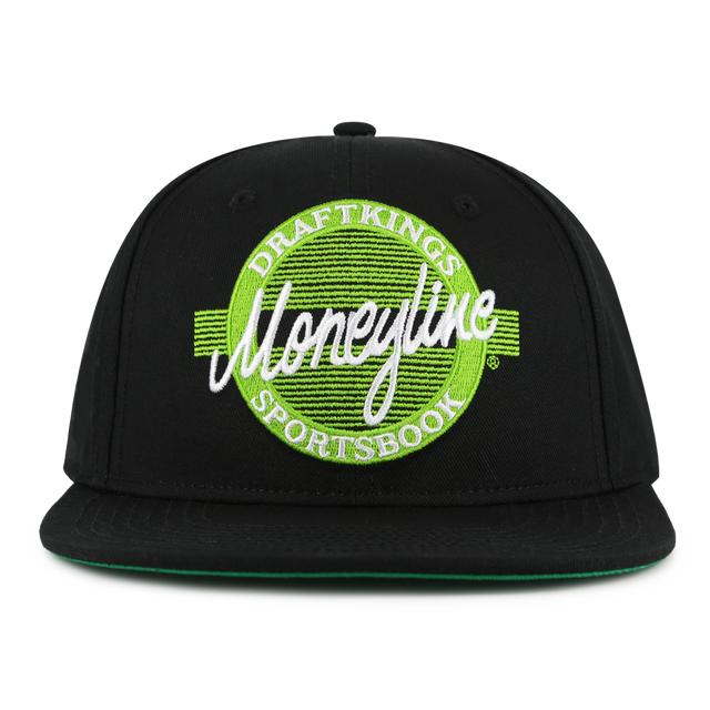 Bring the bold style of the 80’s into today with the DraftKings x The Game Retro Circle Moneyline Hat. Featuring a vibrant oversized circle design in electric green embroidery against a deep black cotton twill, this hat delivers vintage sports energy with a modern edge. The authentic kelly green undervisor seals the retro look, while the high-profile shape and flat visor keep it classic.