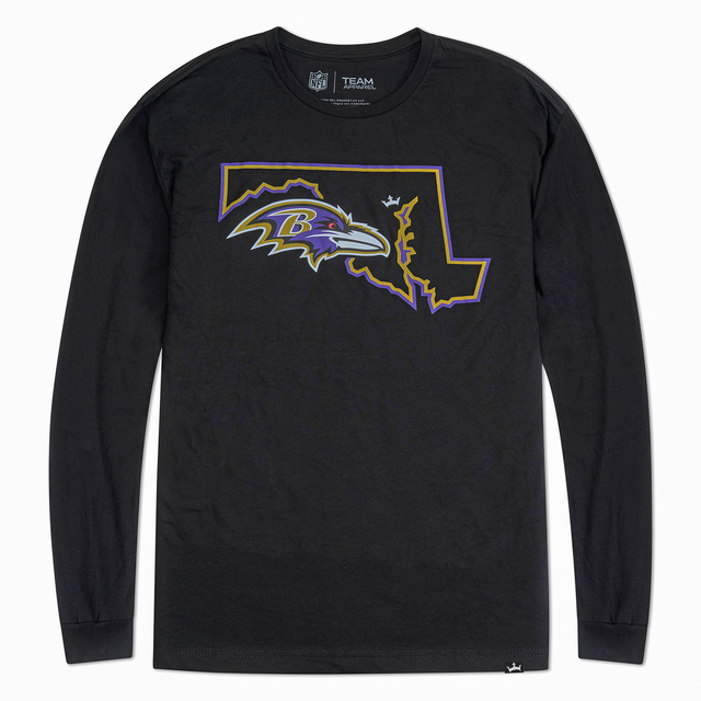 The Baltimore Ravens Long Sleeve Shirt is crafted for die-hard fans. This tee proudly displays the iconic DraftKings crown inside the state outline, nestled in the heart of Baltimore, with the empowering slogan "The Crown Is Yours" on the back of the shirt. Designed with comfort and style in mind, it's an ideal choice for game days, watch parties, or everyday wear. Showcase your allegiance to the Ravens with pride and unparalleled style.