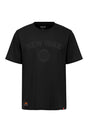 - Tonal black t-shirt with black applique design