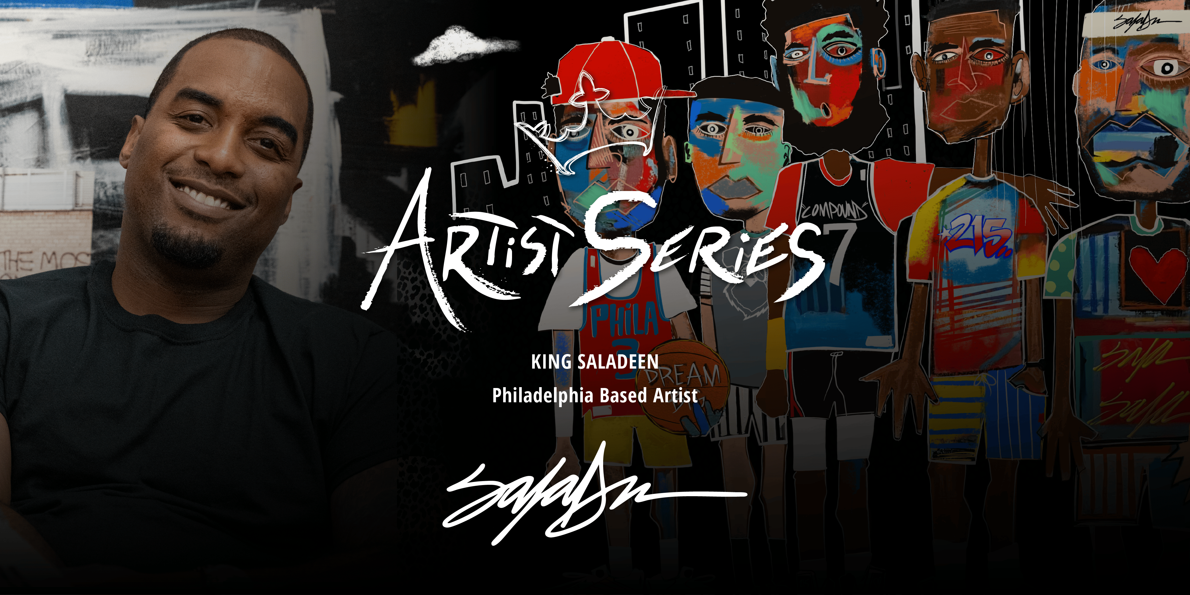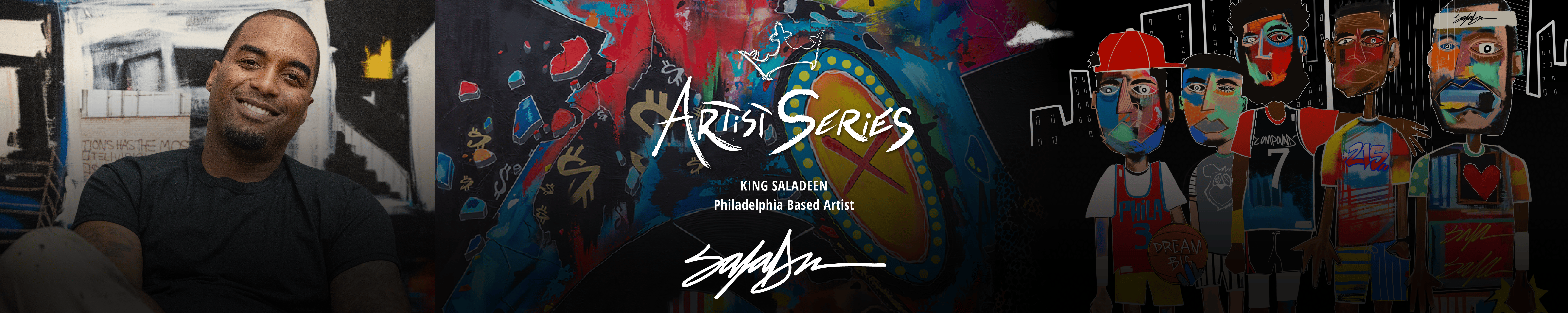 Raheem Saladeen Johnson, aka King Saladeen, grew up in West Philadelphia and found happiness through his passion for art despite life's challenges. Since age 5, he’s been drawn to creativity, using anything he could find to draw. Raised in a tough environment with few artistic outlets, he excelled in basketball, traveling across the country and experiencing new landscapes that deeply influenced his art. These experiences continue to inspire him today.