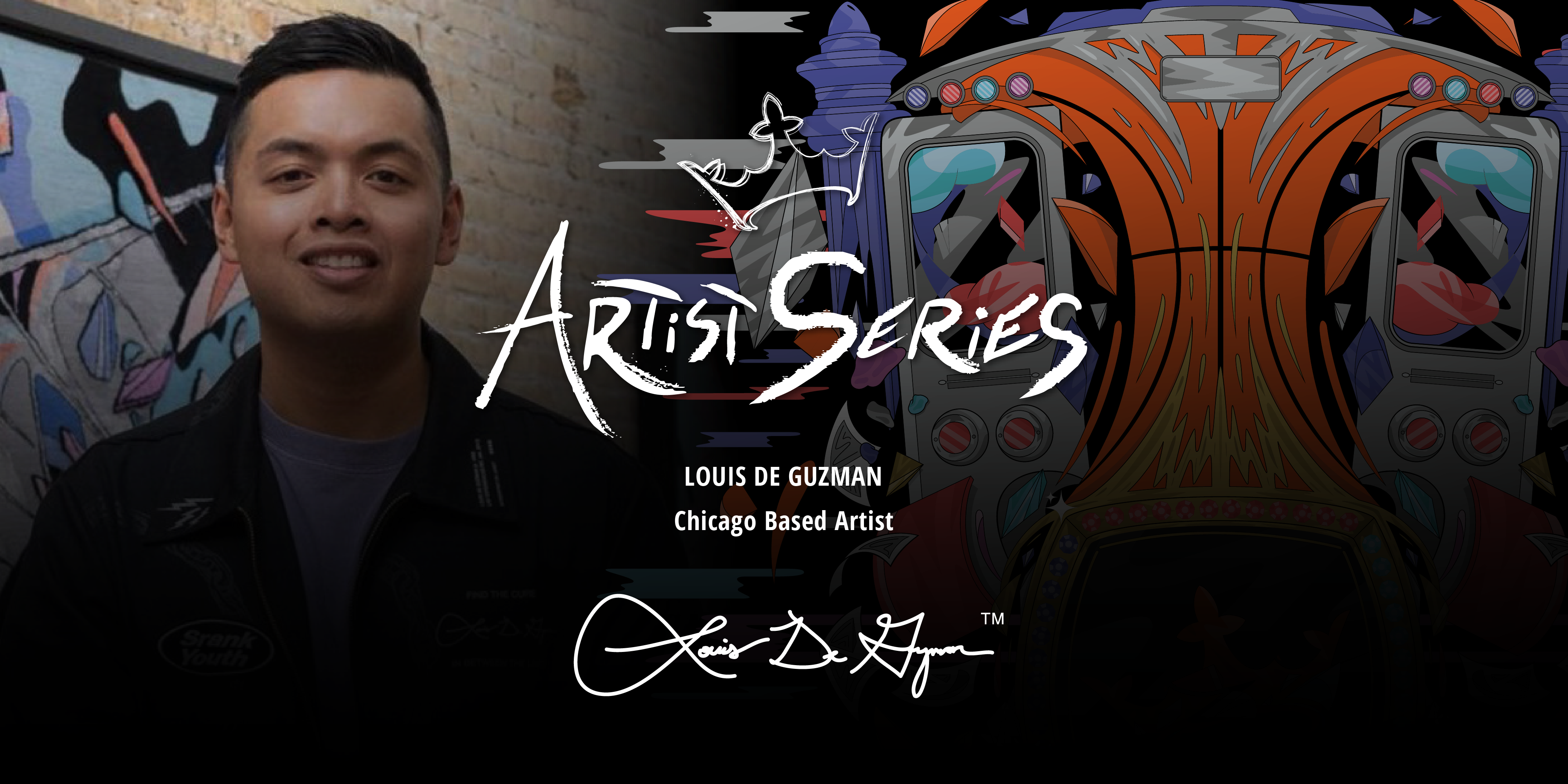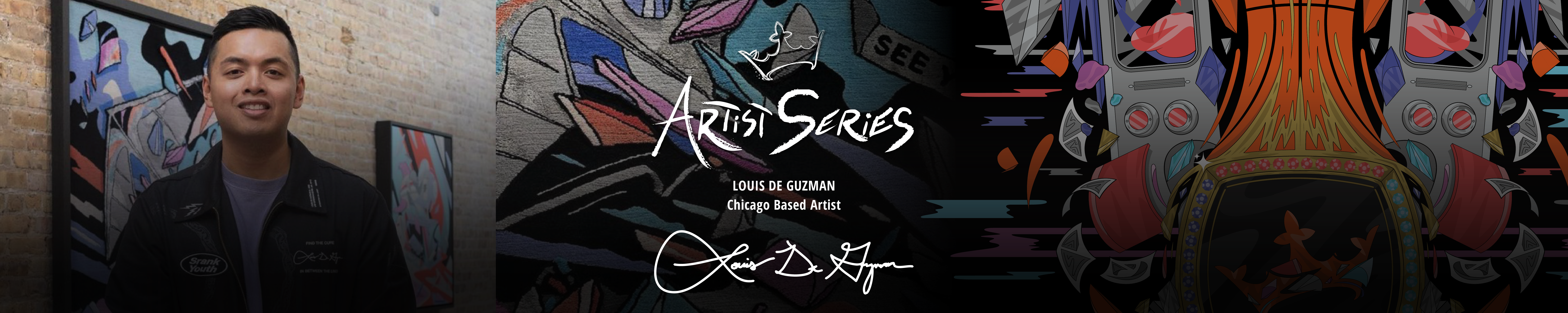 His signature geometric abstraction style often blends together images and stories that represent his family's immigrant journey, as well as his own experience as a second generation Filipino American. De Guzman's career has led him to create well-received original bodies of work as well as interpretations of licensed intellectual property.