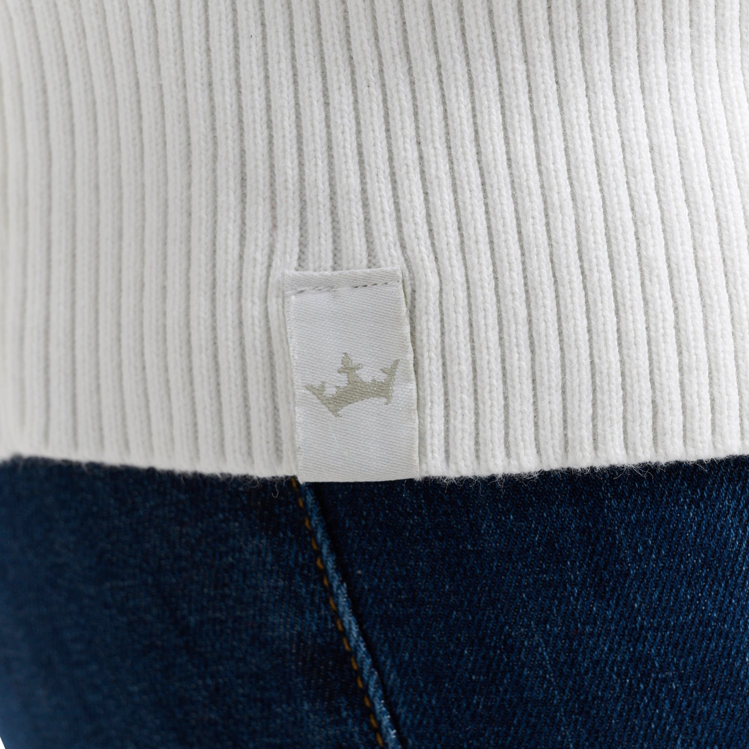 - Subtle crown logo detail at the hem
