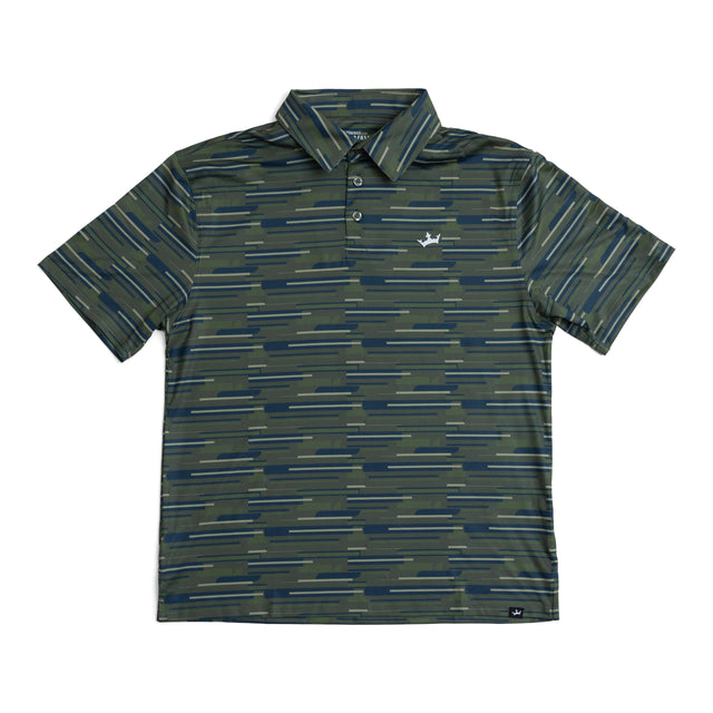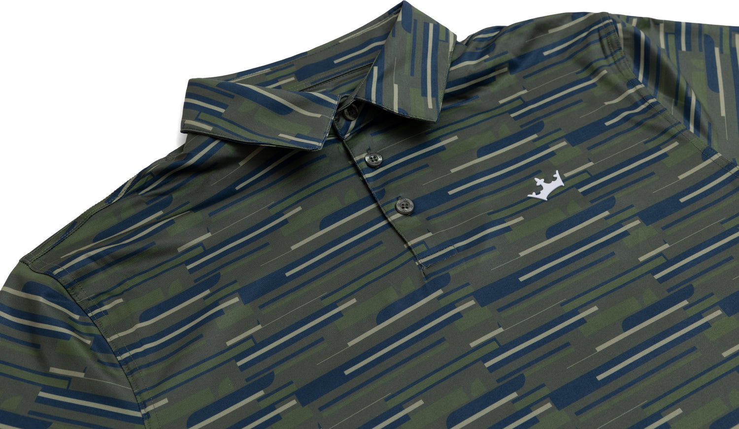 Experience luxury on the golf course with our Men's Camo Golf Polo. This polo combines performance with style, featuring breathable and moisture-wicking fabric with four-way stretch technology. The crisp collar and wrinkle-free material make it suitable for both the course and town. With its comfort fit, it can be worn tucked or untucked. Adorned with our signature crown logo, this polo is an exclusive addition to your wardrobe.