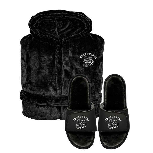 Lounge in style with the Casino Robe and matching Fur Slides. The robe’s plush 14.5-oz fleece and bold dice graphic bring warmth and flair, while the slides’ fur footbed, adjustable strap, and EVA midsole keep every step soft, stable, and comfortable.