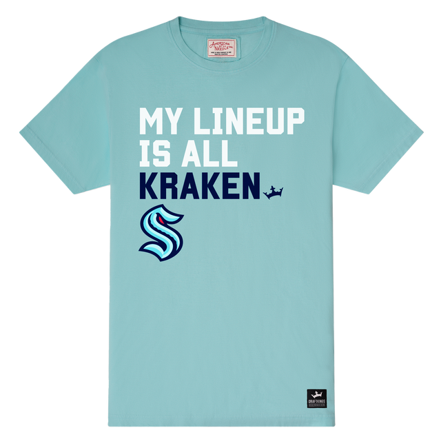 Seattle Kraken My Lineup T-shirt - Aqua / S is backordered and will ship as soon as it is back in stock.