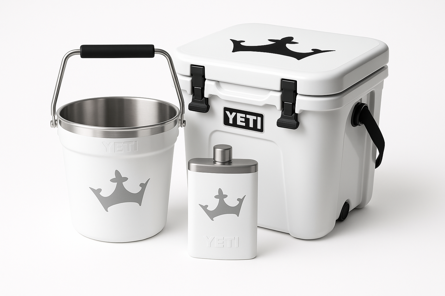 - YETI® RAMBLER™ Beverage Bucket with Lid (White) – Built for sharing and built to last, this bucket is perfect for ice, drinks, or whatever your party needs.